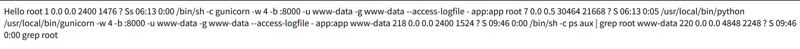 root 1 0.0 0.0 2400 1476 ? Ss 06:13 0:00 /bin/sh -c gunicorn...