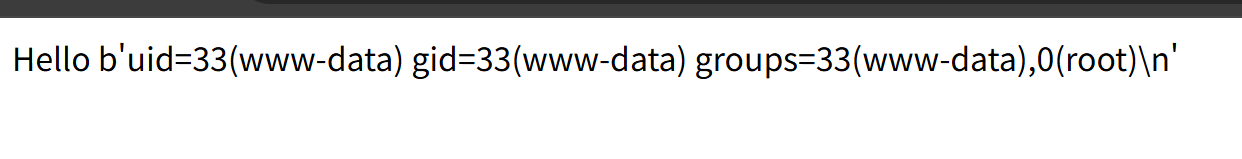 - uid=33(www-data) 当前进程的有效用户 ID 是 33,用户名是 www-data(Web 服务器用户)