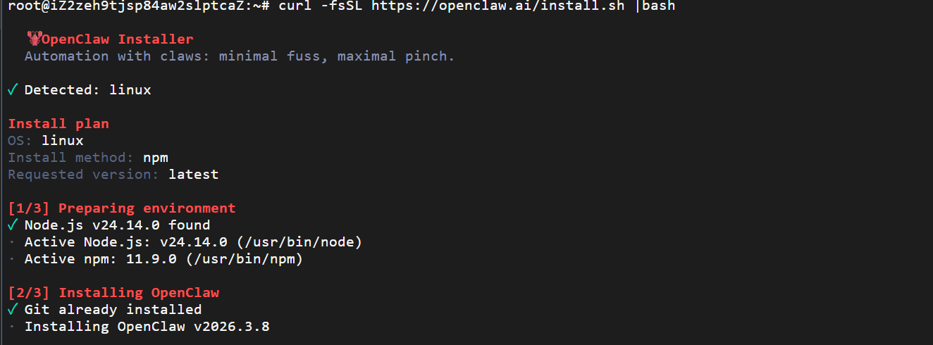 curl -fsSL https://openclaw.ai/install.sh |bash