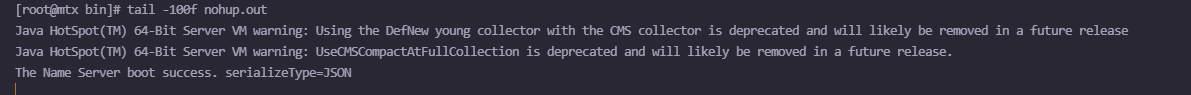 查看当前目录下的nohup.out日志,如有以下日志,代表启动成功