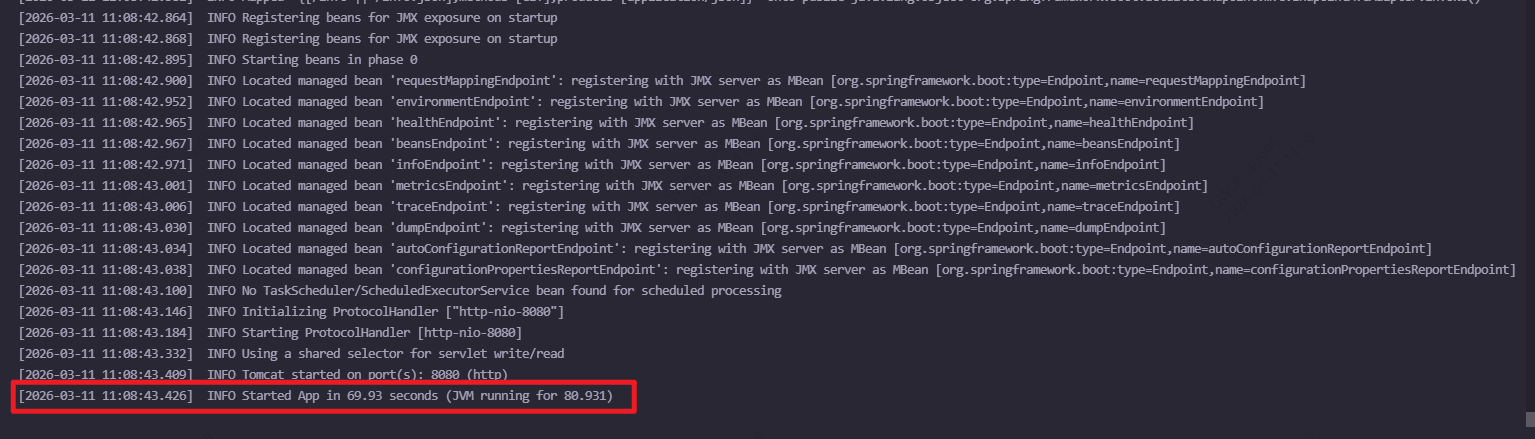 注:默认使用8080端口,如果想使用其他端口,添加参数--server.port=xxxx