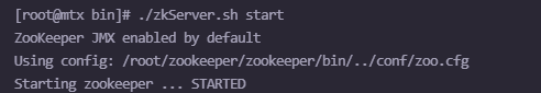 3、进到zookeeper的bin目录下,执行 "./zkServer.sh start" 启动zookeeper,有以下提示代表成功