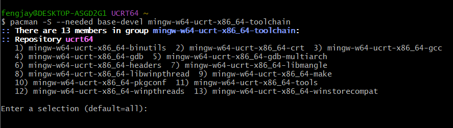pacman -S --needed base-devel mingw-w64-ucrt-x86_64-toolchain