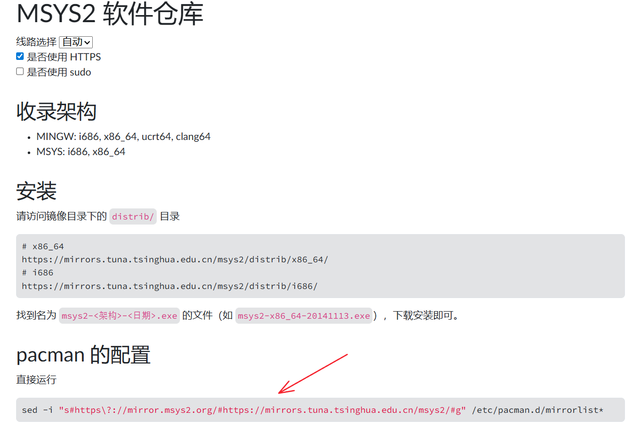 sed -i "s#https\?://mirror.msys2.org/#https://mirrors.tuna.tsinghua.edu.cn/msys2/#g" /etc/pacman.d/mirrorlist*