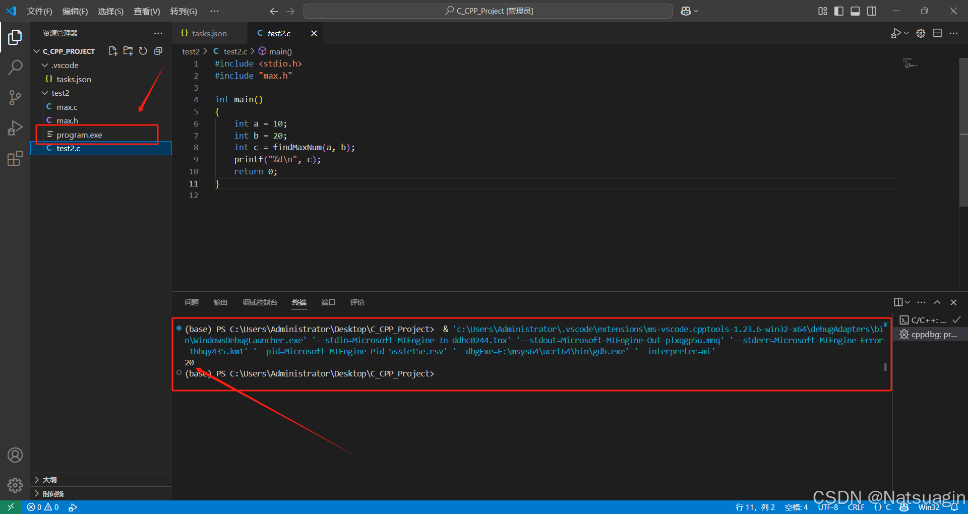 "${workspaceFolder}\\test2\\program.exe" // 统一生成 program.exe
