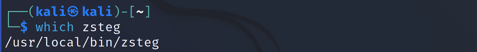 Step3。验证安装已成功。输入bash指令,可看到图2界面,说明zsteg被安装在/usr/lcoal/bin/zsteg这个路径下(科普,放在这个路径下说明安装的非常成功,因为在kali-linux中这个路径一般用来专门存放第三方包,而/bin与/usr/bin一般是存放系统的核心命令)