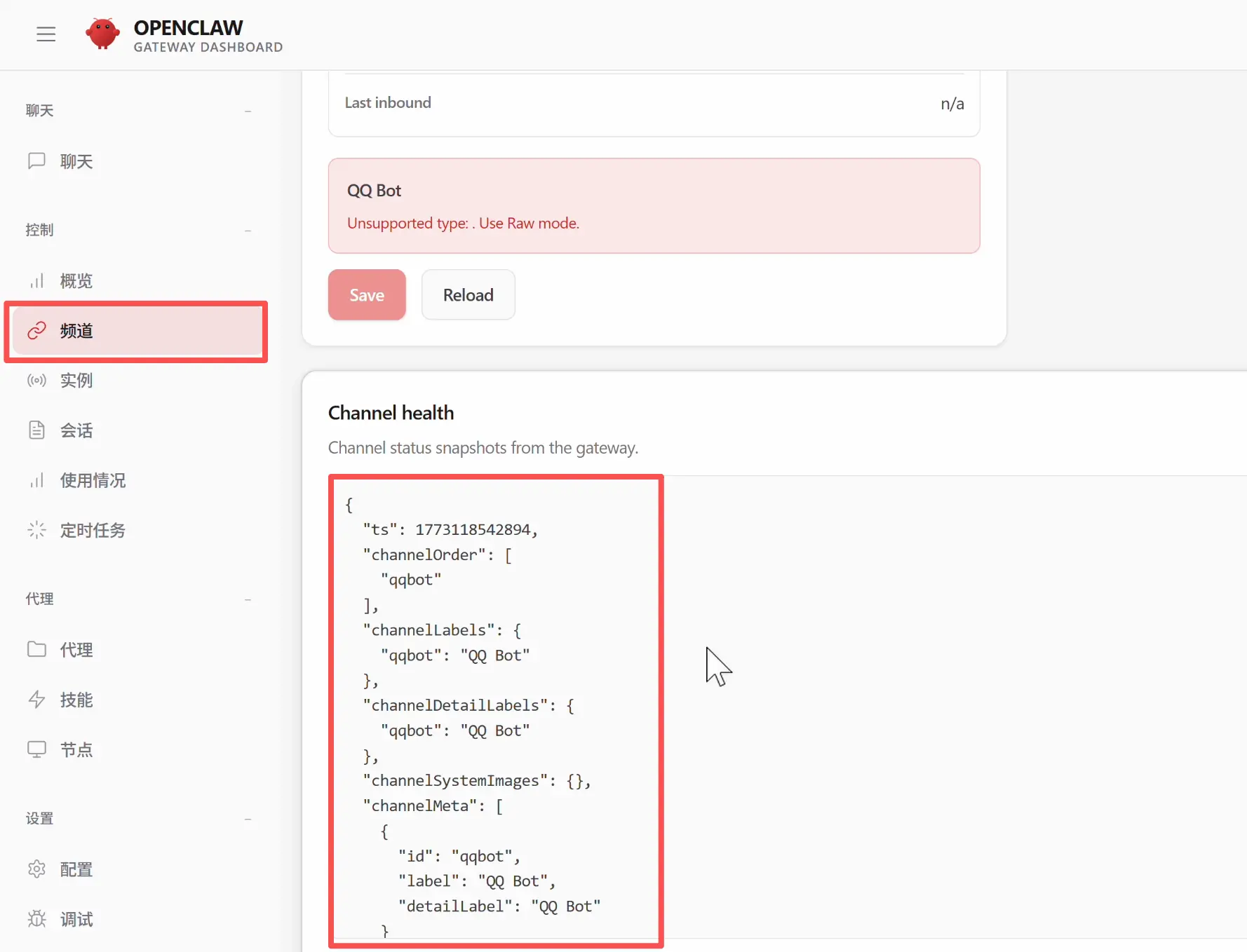接入成功后,你可以在 OpenClaw 的网页控制台的「频道」(Channels)板块看到已经接入了 QQ 机器人渠道: