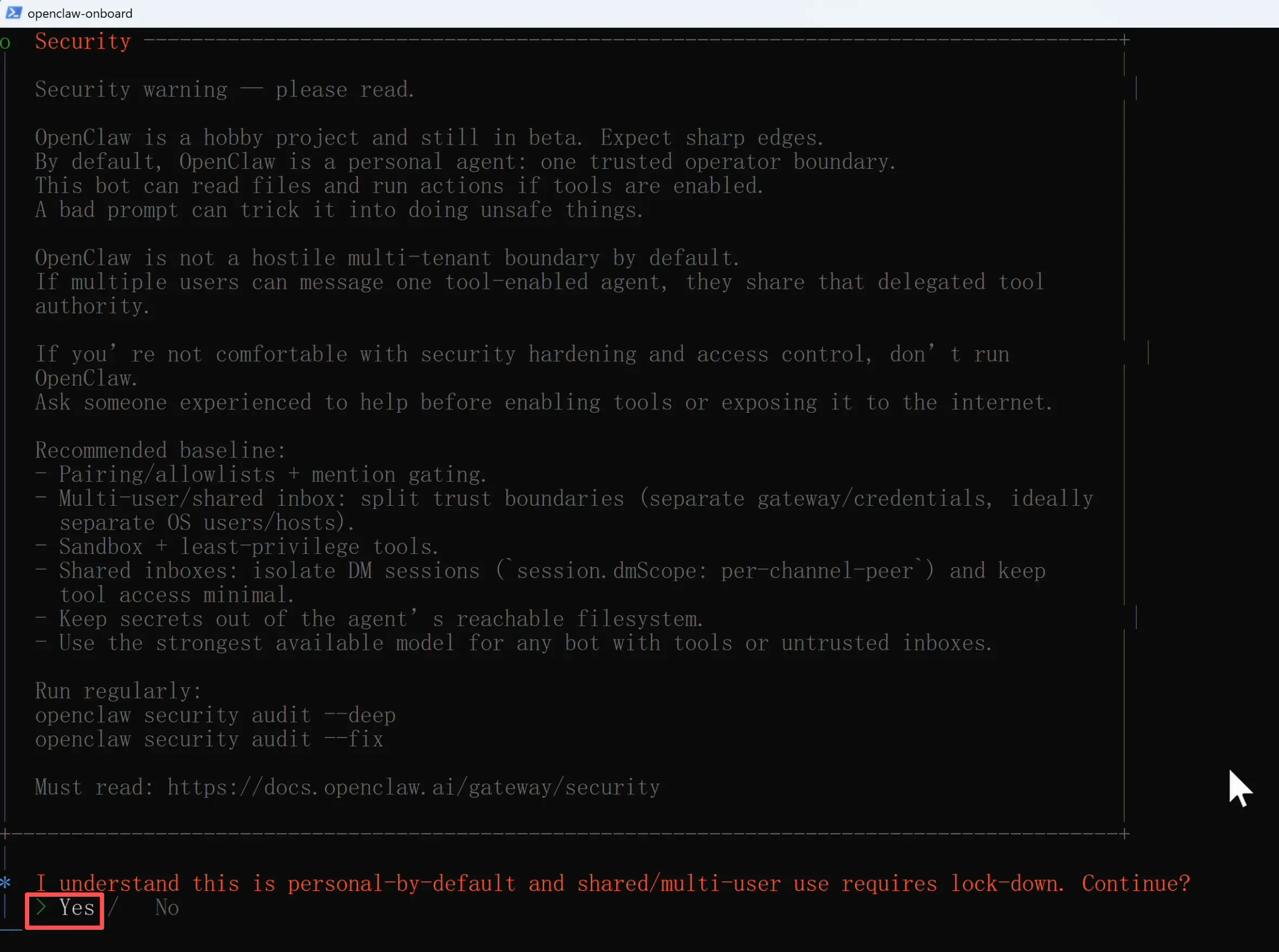 环境装好了,接下来进入 OpenClaw 的新手引导程序,定制你的小龙虾 🦞。