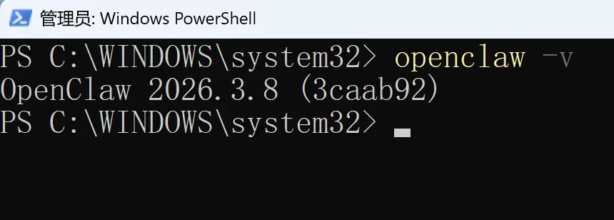 最后,验证一下 OpenClaw 是否安装成功,执行: