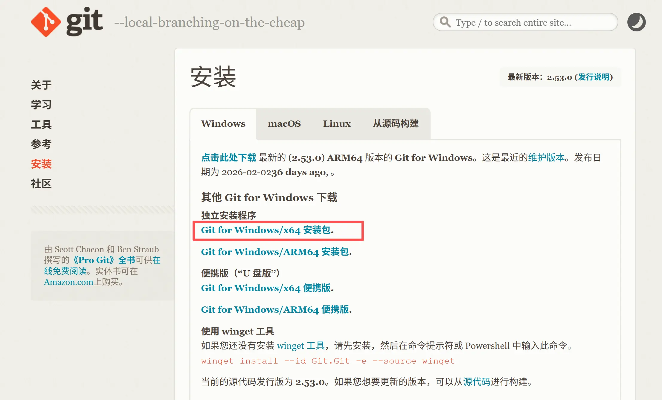 打开 Git 官网,下载 Windows 版本的安装包: