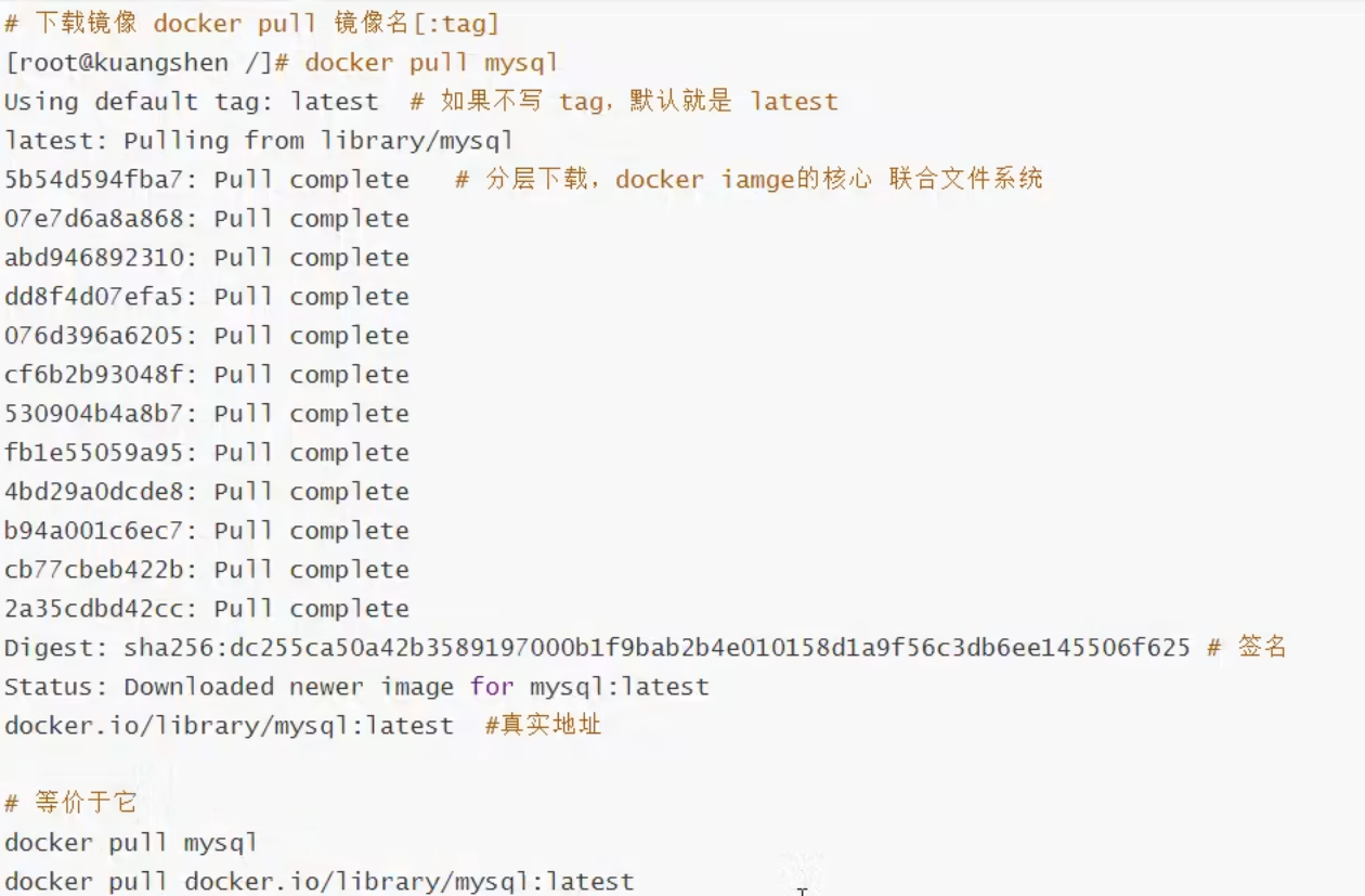 (不指定tag,就默认下载latest(最新版),分层下载,