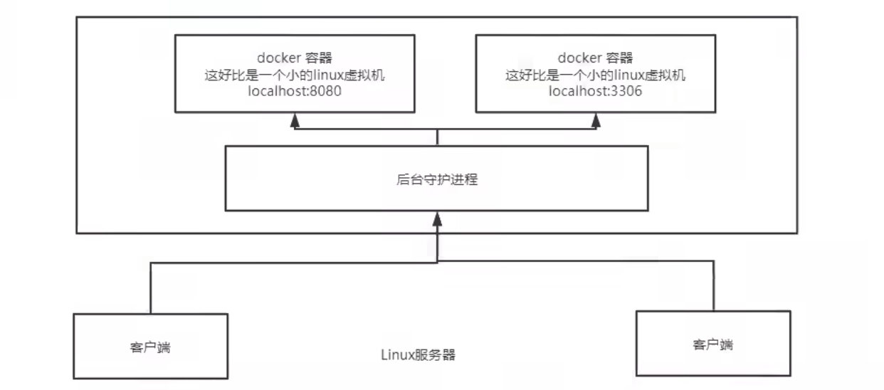 C/S结构,守护进程运行在主机上,通过Socket从客户端来访问