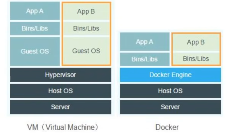 Docker有着比虚拟机更少的抽象层,Docker利用的是宿主机的内核,VM则需要Guest OS