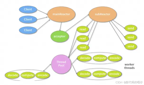 Netty 的 I/O 模型是基于非阻塞 I/O 实现的,底层依赖的是 NIO 框架的多路复用器 Selector。采用 epoll 模式后,只需要一个线程负责 Selector 的轮询。当有数据处于就绪状态后,需要一个事件分发器(Event Dispather),它负责将读写事件分发给对应的读写事件处理器(Event Handler)。事件分发器有两种设计模式:Reactor 和 Proactor,Reactor 采用同步 I/O, Proactor 采用异步 I/O。