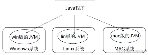 JVM也是一个软件,不同的平台有不同的版本。我们编写的Java源码,编译后会生成一种 .class 文件,称为字节码文件。Java虚拟机就是负责将字节码文件翻译成特定平台下的机器码然后运行。也就是说,只要在不同平台上安装对应的JVM,就可以运行字节码文件,运行我们编写的Java程序。