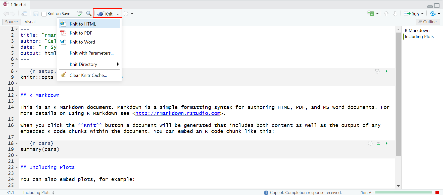 点击 knit 按钮,选择导出格式类型即可