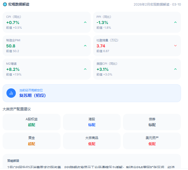 - 宏观数据分析:系统解读 CPI、PPI、PMI 等核心宏观数据,推演政策传导路径与大类资产配置影响
