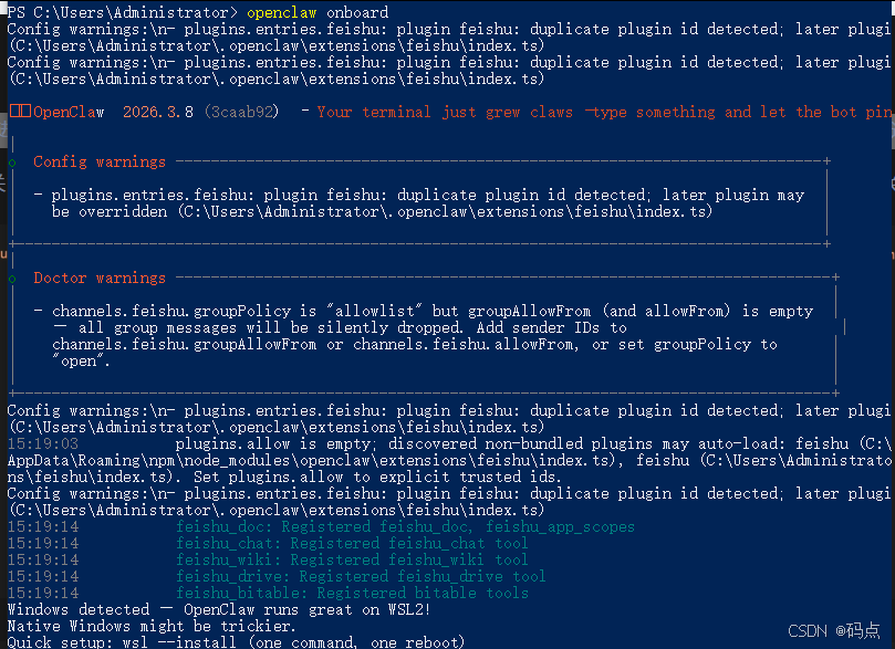 在运行龙虾的机器命令行输入:进入配置界面。