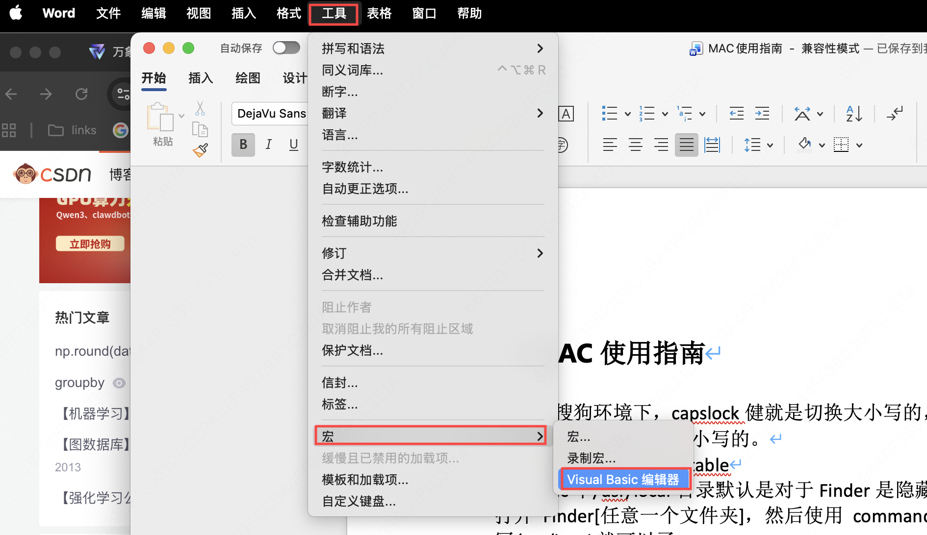 2.打开宏工具。