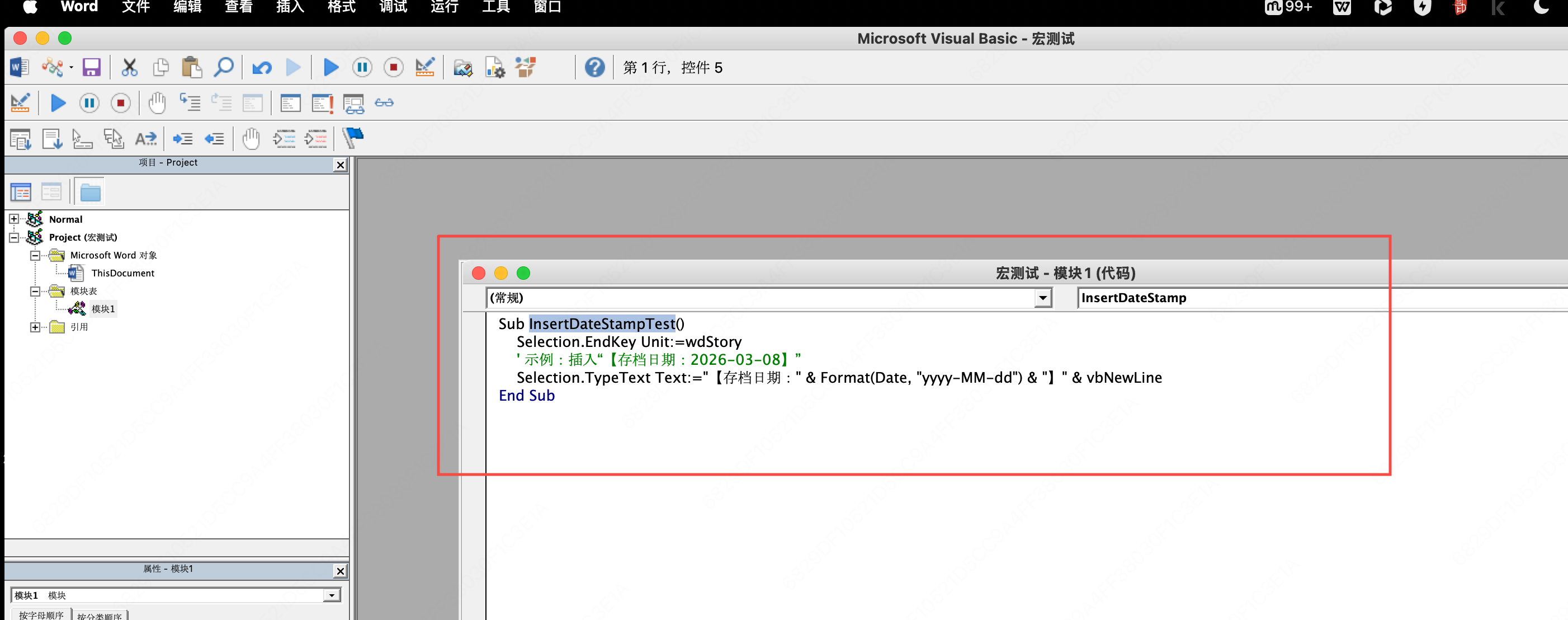 例如,这里我们完成了一个名为"InsertDateStampTest"的函数
