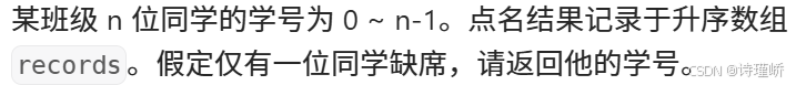 我们要找的缺失数字,实际上就是第一个出现records[i]!= i 的下标索引 i