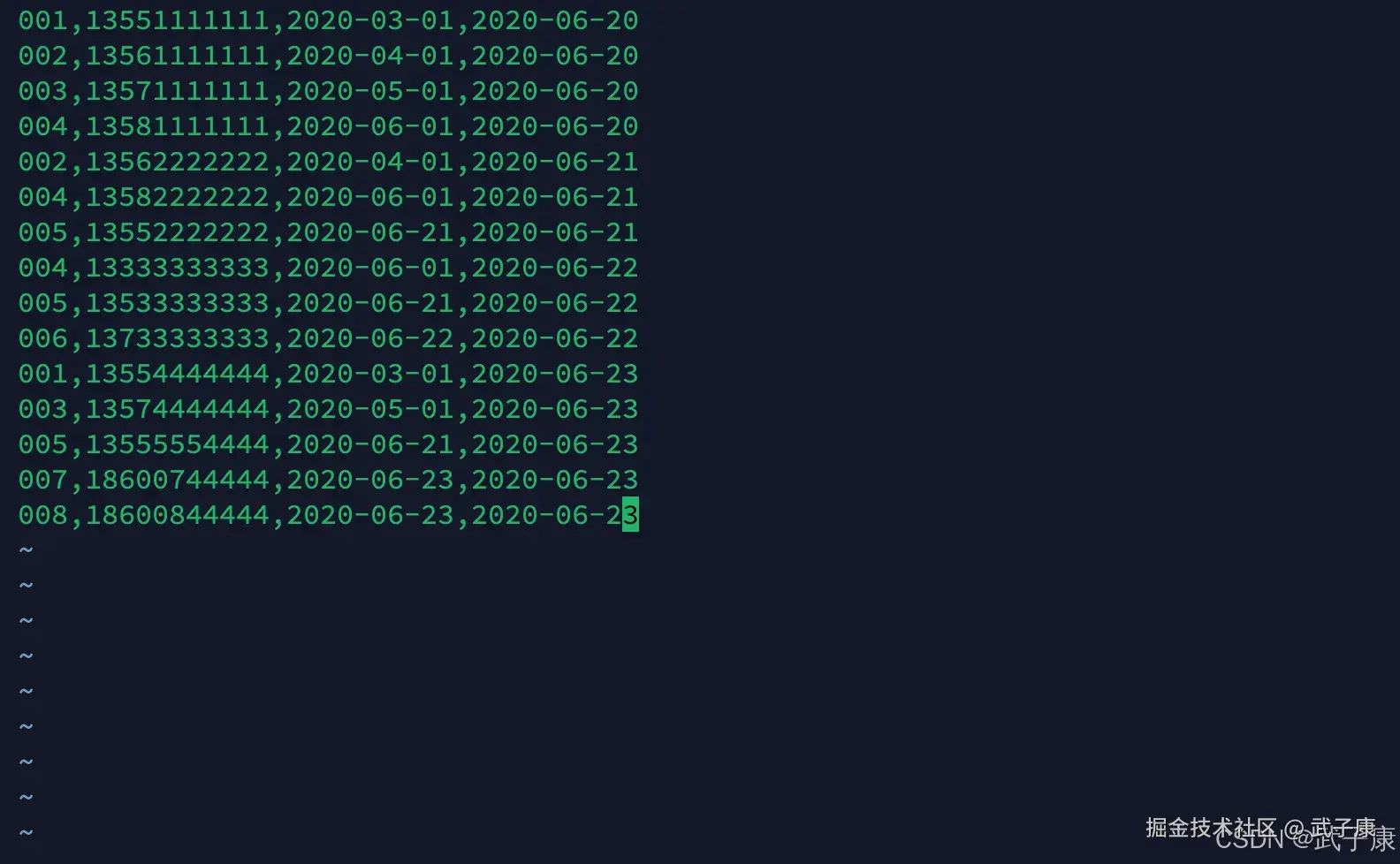 001,13551111111,2020-03-01,2020-06-20