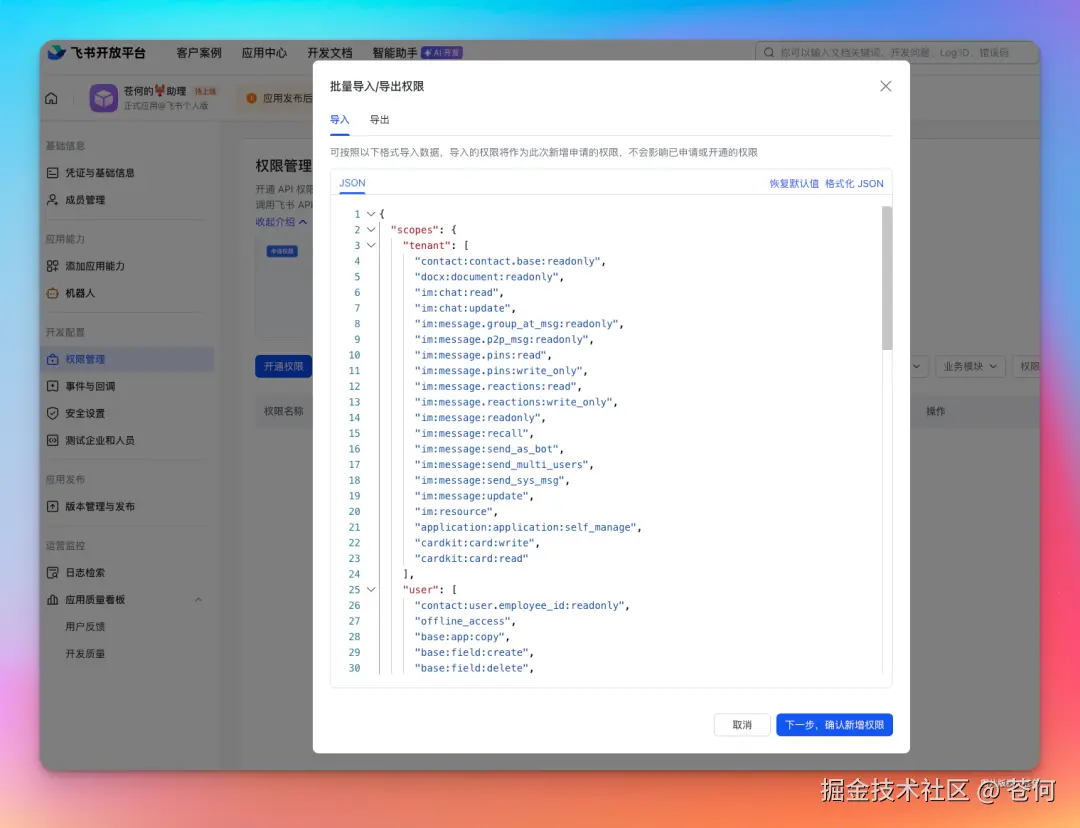 然后批量导入应用权限: