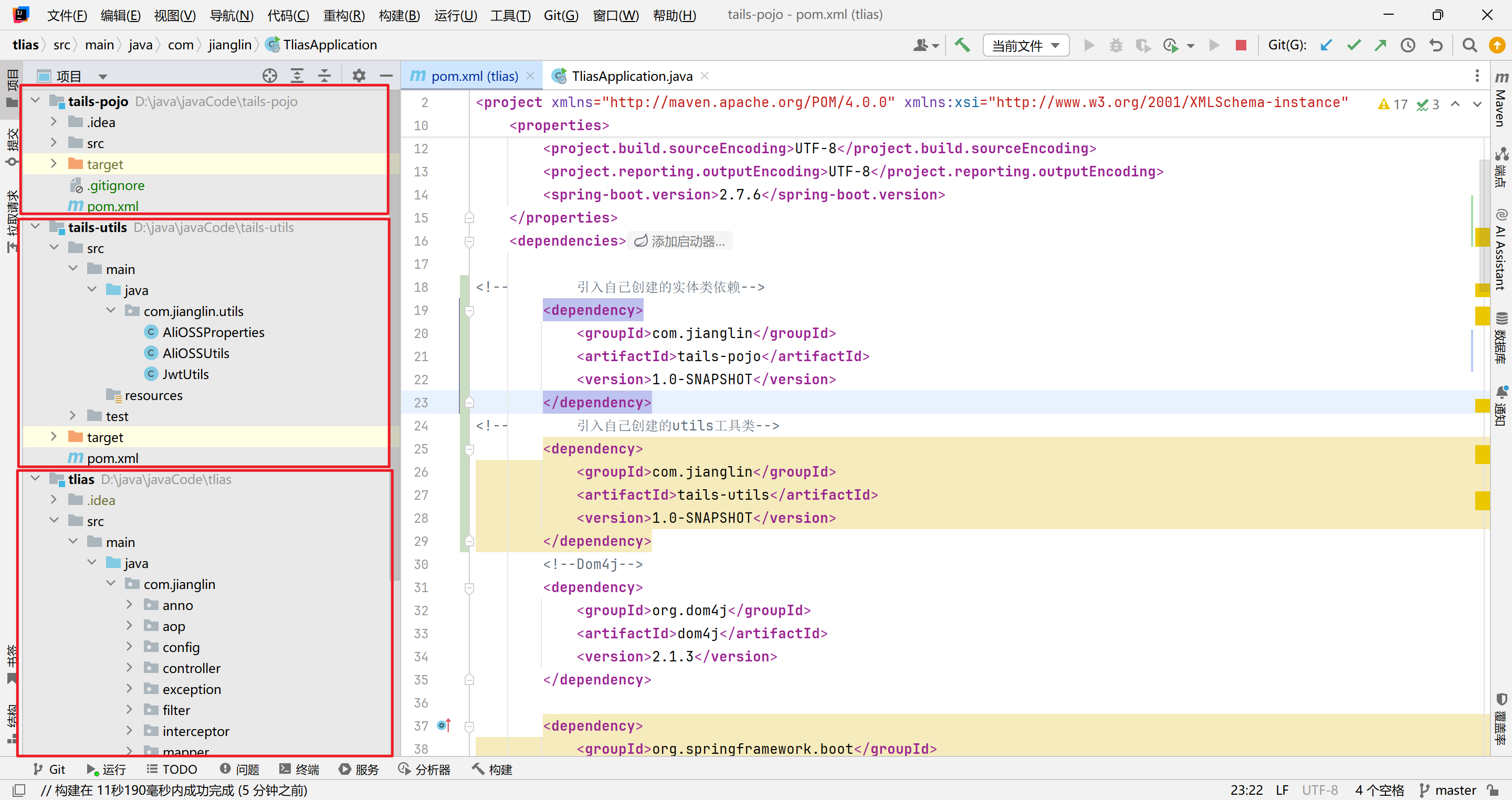 聚合是在聚合工程中配置关系,聚合可以感知到参与聚合的模块有哪些