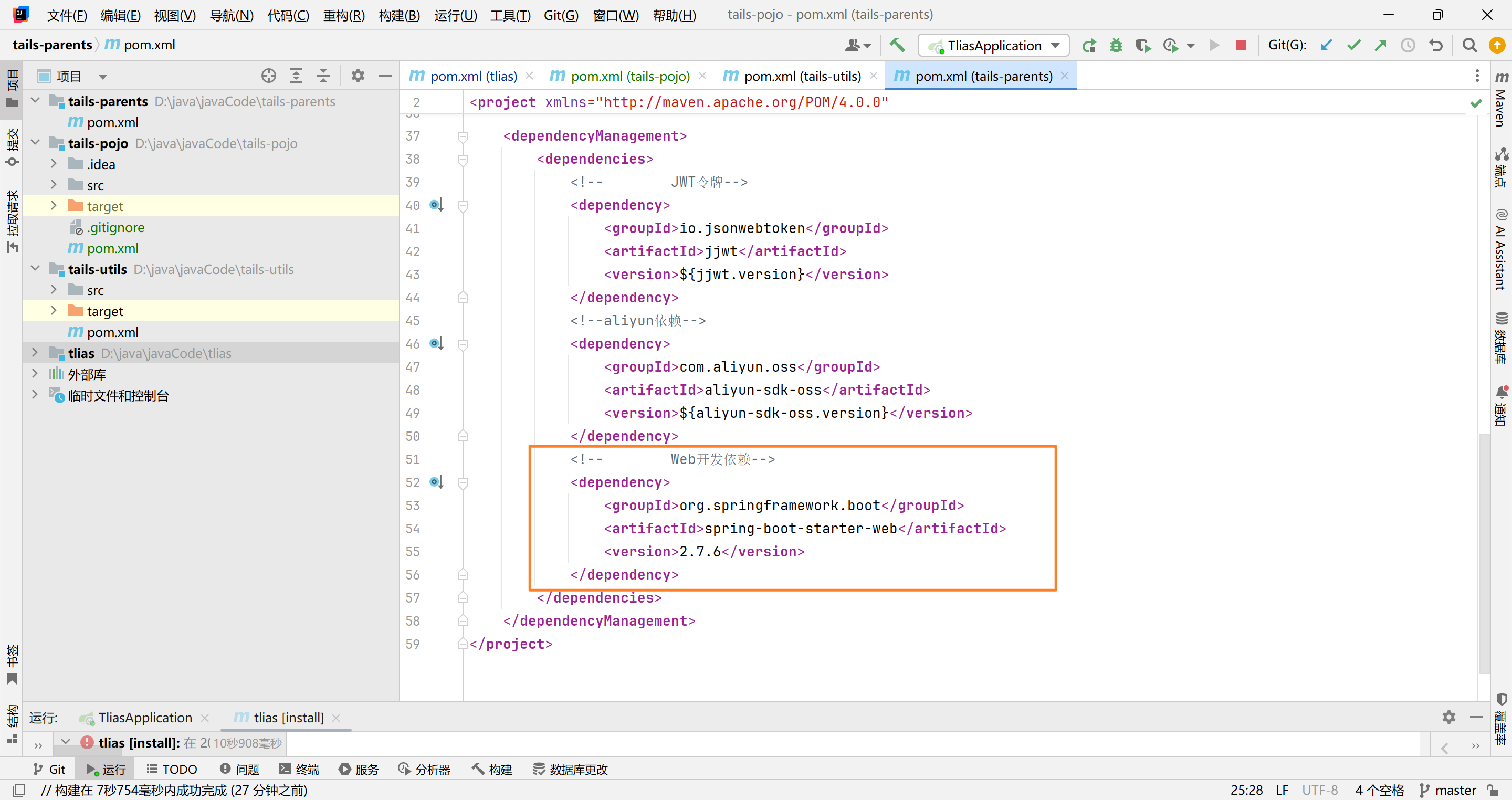 对于springboot我们不会对其进行同一版本管理,因为spring boot已经自动设置了版本管理了。