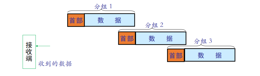 分组交换网以"分组"作为数据传输单元,依次把各分组发送到接收端(假定接收端在左边);