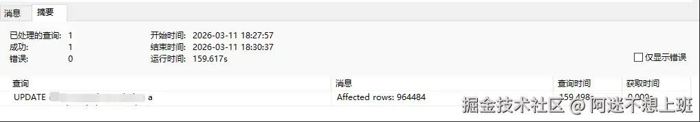影响行数 是因为部分数据就是没有code,所以不是处理条数 的10000条或者100w条