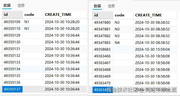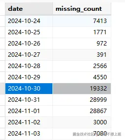 查了五个业务主体缺失字段的时间,推测出缺失时间是2024-10-30 上午10点左右开始的