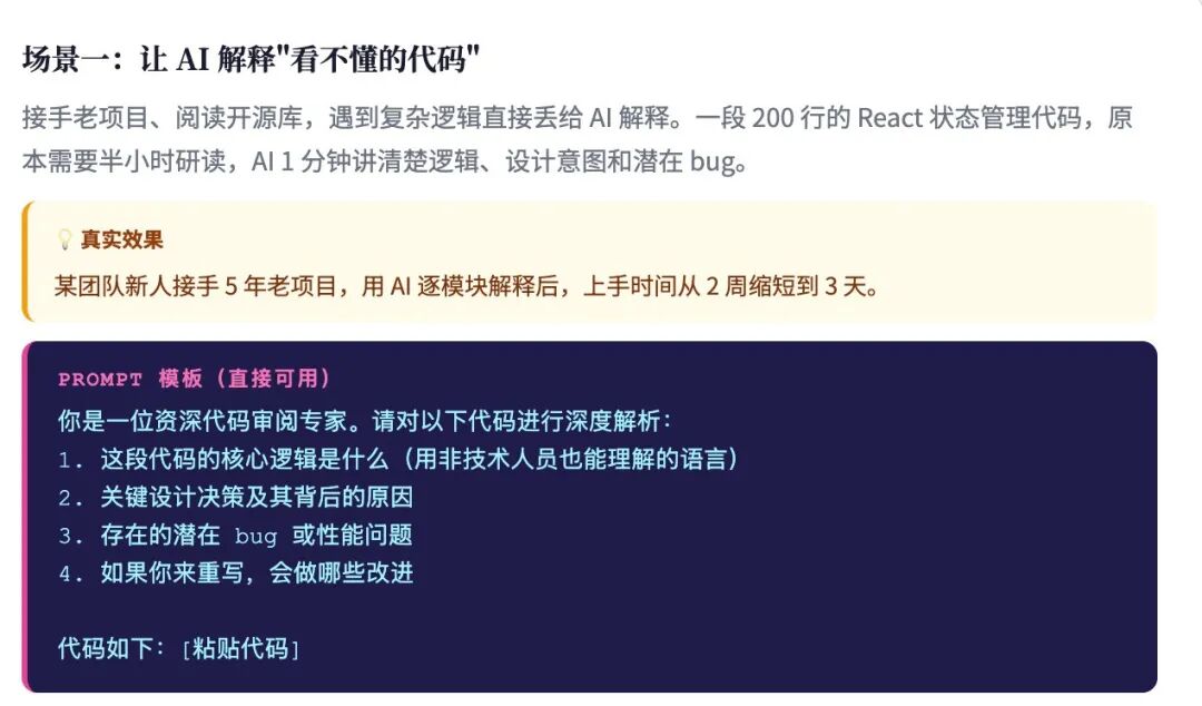 负责电商支付模块重构,借助 Cursor Agent 模式,AI 自动读懂老代码、生成新架构、写单测、处理边界情况。他只做了方向决策和最终 Review,3天交付了原计划2周的工作量。