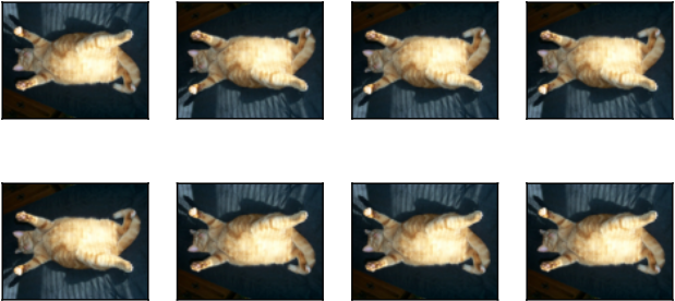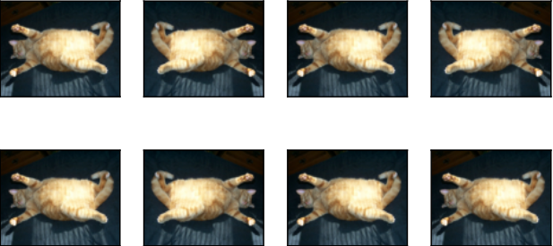 apply(img, torchvision.transforms.RandomVerticalFlip())