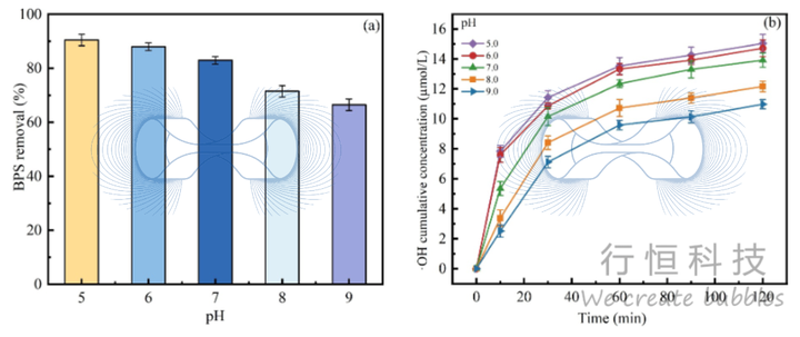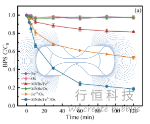 研究以双酚S(BPS)为主要目标污染物。结果表明,MNBs的引入可将Fe2+/Ox体系对BPS的去除效率提升约35%。在120分钟内,MNBs/Fe2+/Ox体系对BPS的降解率达到83%,是单独Fe2+/Ox体系(48%)的约1.7倍。