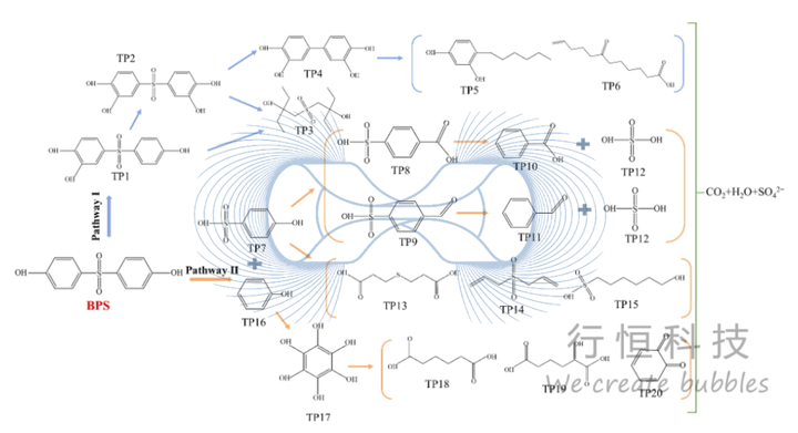 通过LC-MS鉴定了20种BPS的转化产物,并提出了两条主要降解路径(降解路径图):