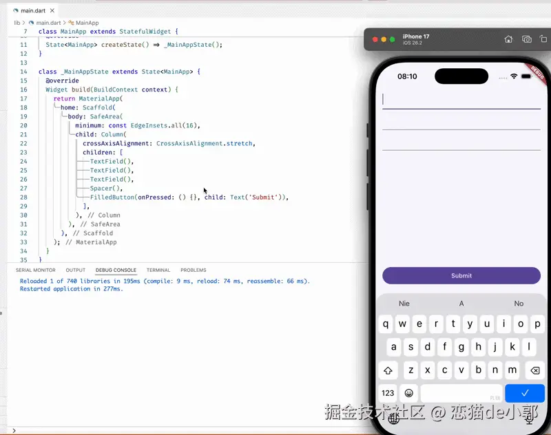 回到正题,近日不少人在 #180842 中反馈,当 Flutter 升级后,点击带有 AutoFill 的输入框时,键盘会像"抽风"一样先弹起、收缩、再弹起: