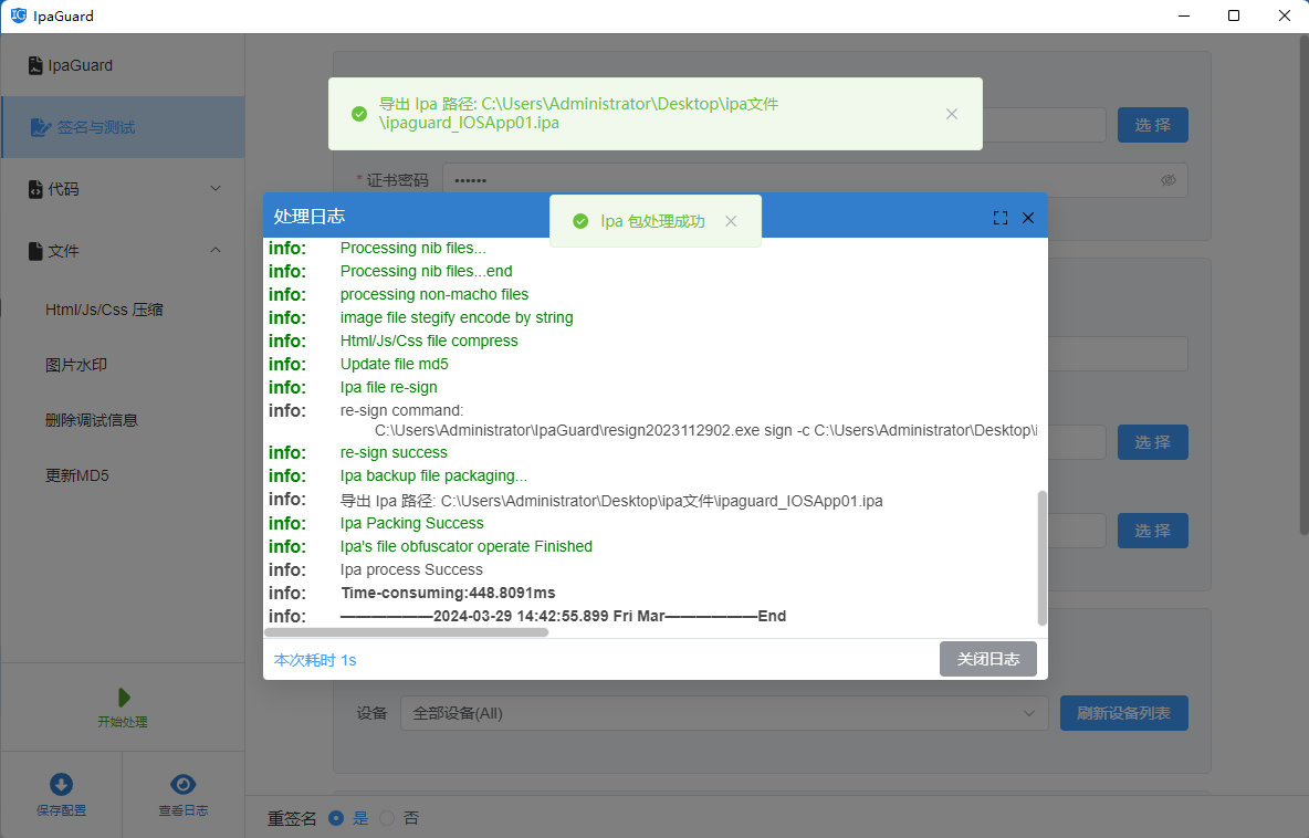 如果某个模块异常,可以回到混淆配置中取消对应符号的处理,然后重新生成 IPA。