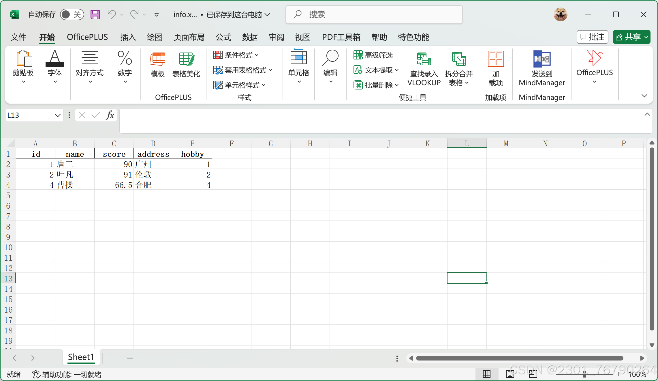 | 6 | 超人 | 83.00 | 上海 | 2 |