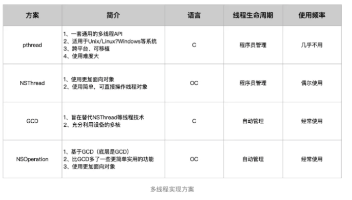 objc//GCD: dispatch_async(dispatch_get_global_queue(QOS_CLASS_UTILITY, 0), ^{ NSLog(@"download"); }); //NSThread: NSThread *thread = [[NSThread alloc] initWithBlock:^{ NSLog(@"task"); }]; thread.qualityOfService = NSQualityOfServiceUserInitiated; [thread start];