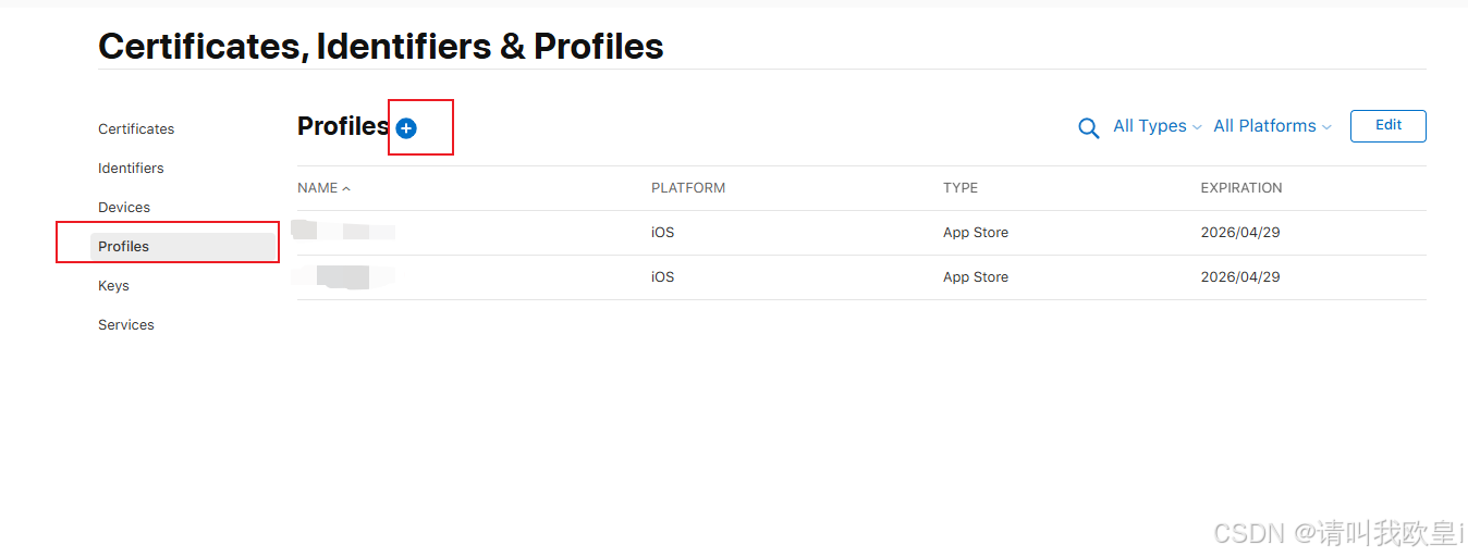 首先点击https://developer.apple.com/account/resources/profiles/list