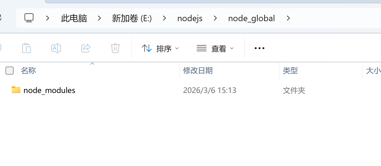 安装成功后,node_global 文件夹下会生成 node_modules 目录。