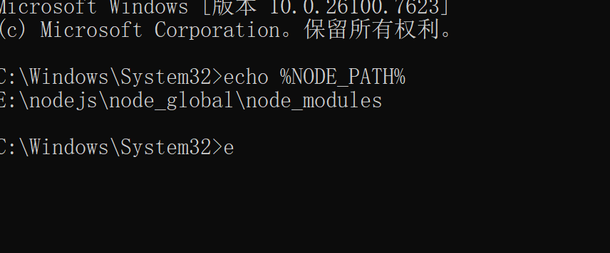 若输出路径为 node_global\node_modules,说明配置成功