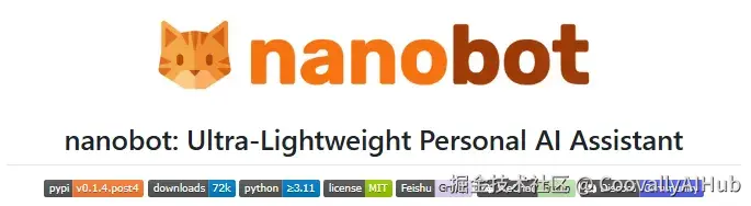 一句话概括:Nanobot 是一个超轻量级的开源个人 AI 助手框架,用不到 OpenClaw 1% 的代码量,实现了核心 Agent 能力。