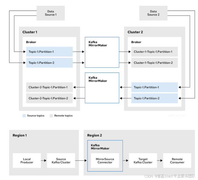 - 远程数据同步:通过MM2,Kafka数据可以在不同地域的集群进行传输复制。