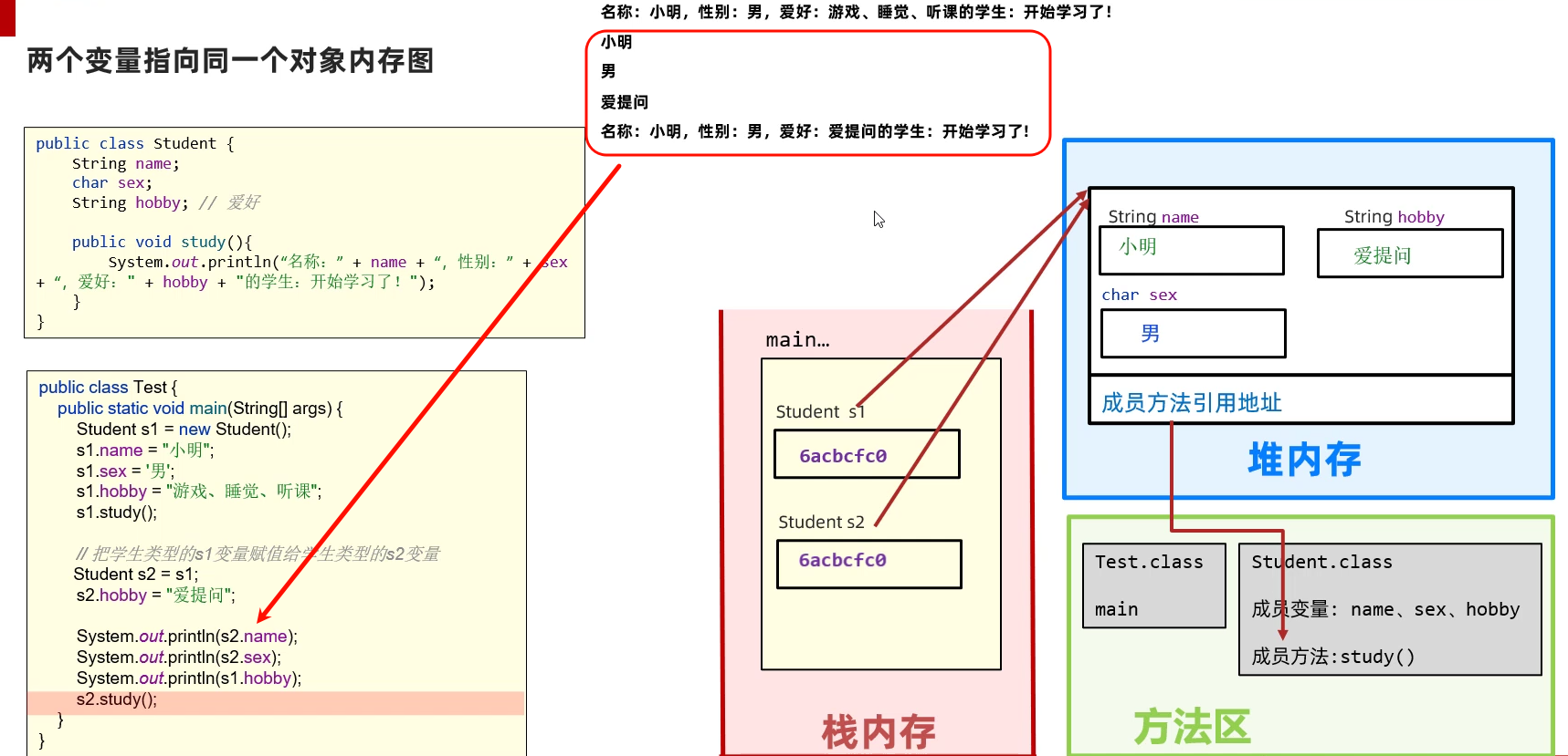 S6:注意:方法那么多代码不会直接放在对象空间里 而是直接放在.class文件里 对象空间存一份方法引用地址即可