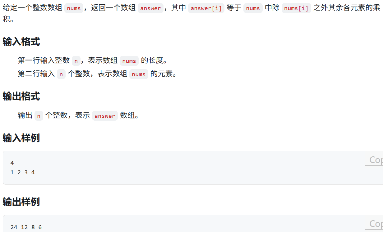 1、vector<int> answer(n,1); int prefix=1; int suffix=1;
