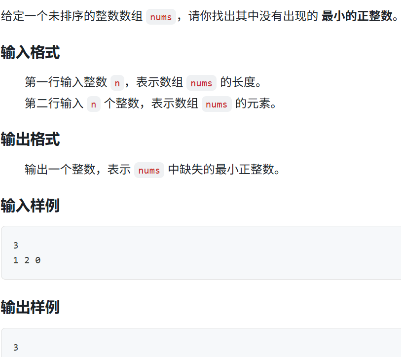 对于一个长度为 n 的数组,最小的缺失正数一定在 [1, n+1] 范围内。因为如果 1到n 都出现了,那么答案就是 n+1。因此,我们可以利用数组本身来标记 1~n 这些数是否出现。