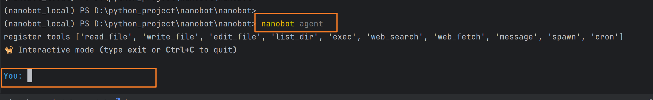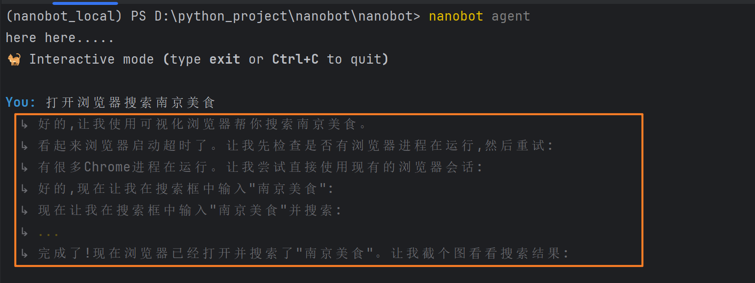 nanobot agent # 开启智能对话