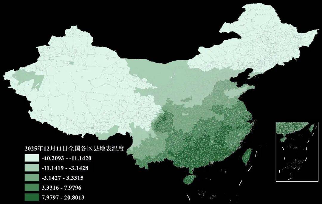 2025年12月11日全国各区县逐日地表温度(Shp格式)